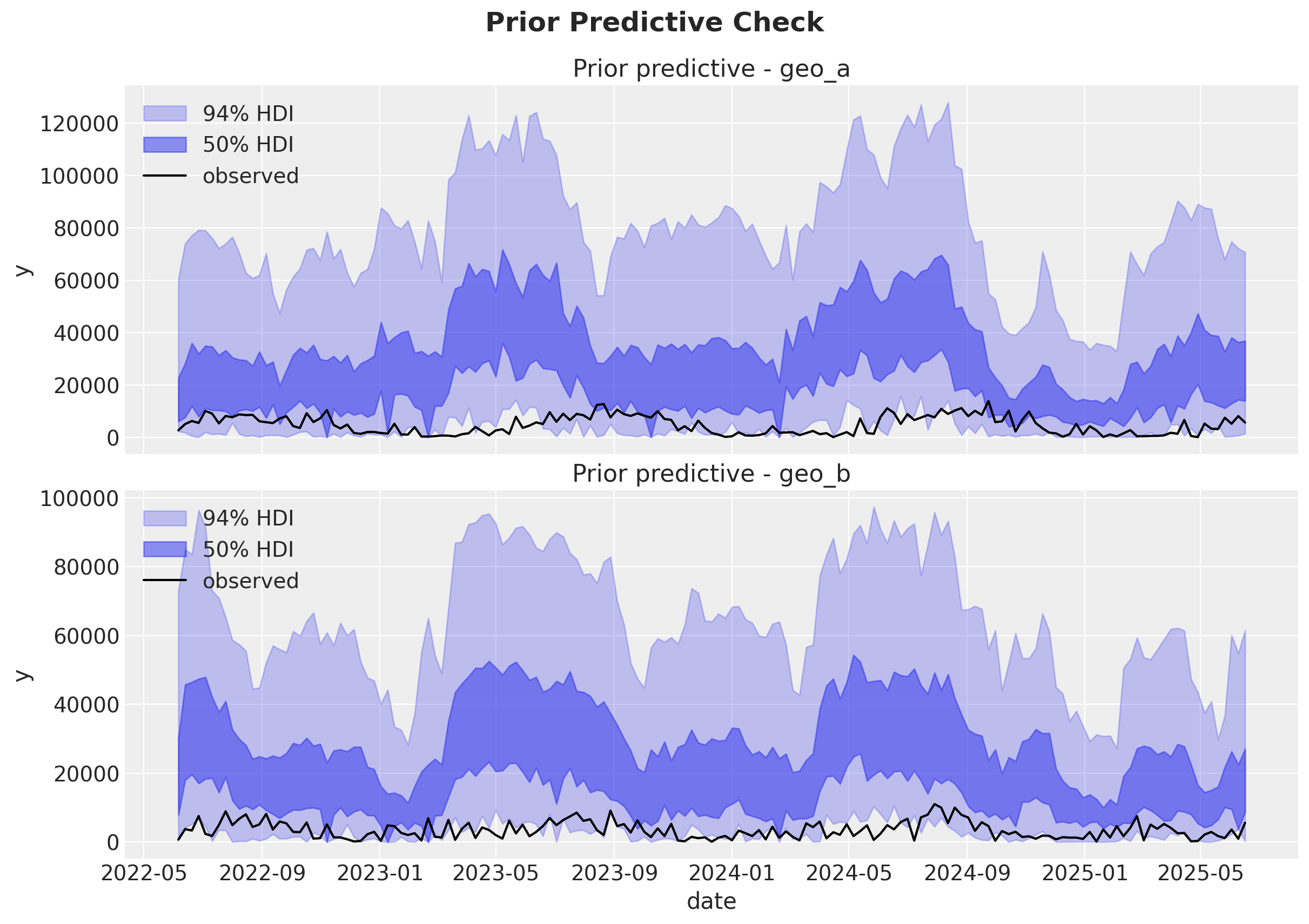 This custom specification highlights how to combine PyMC-Marketing components and custom PyMC structure: