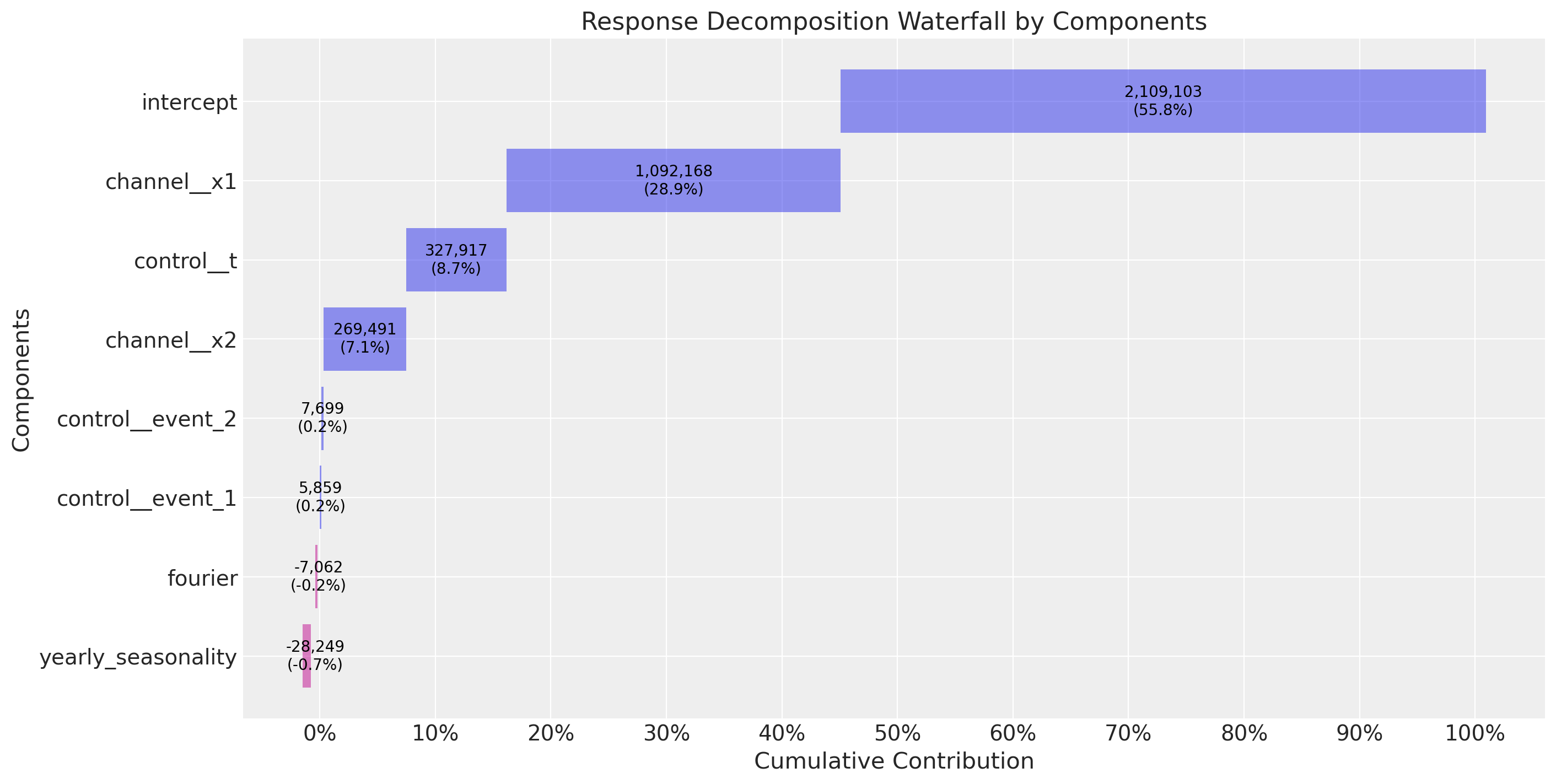 mmm.plot.waterfall_components_decomposition(original_scale=True);