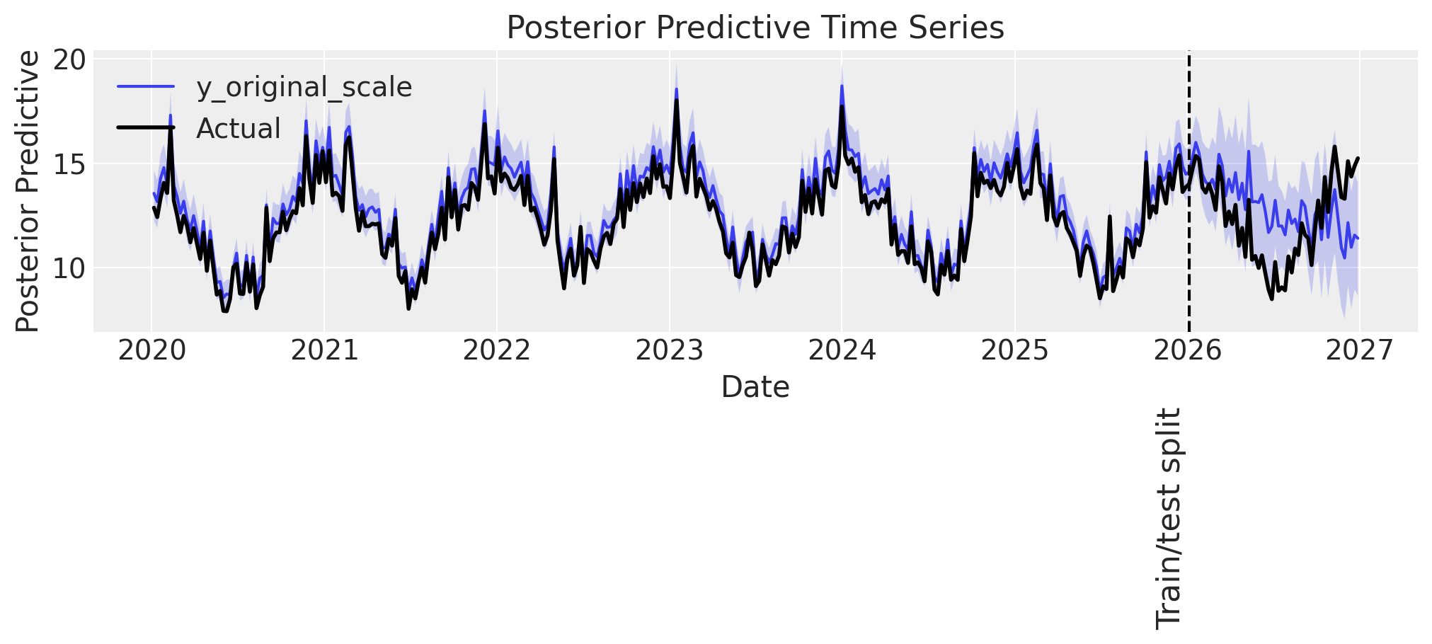 💡 Let’s try to refit the model with a shorter length scale prior mean of one year (52.18 weeks).